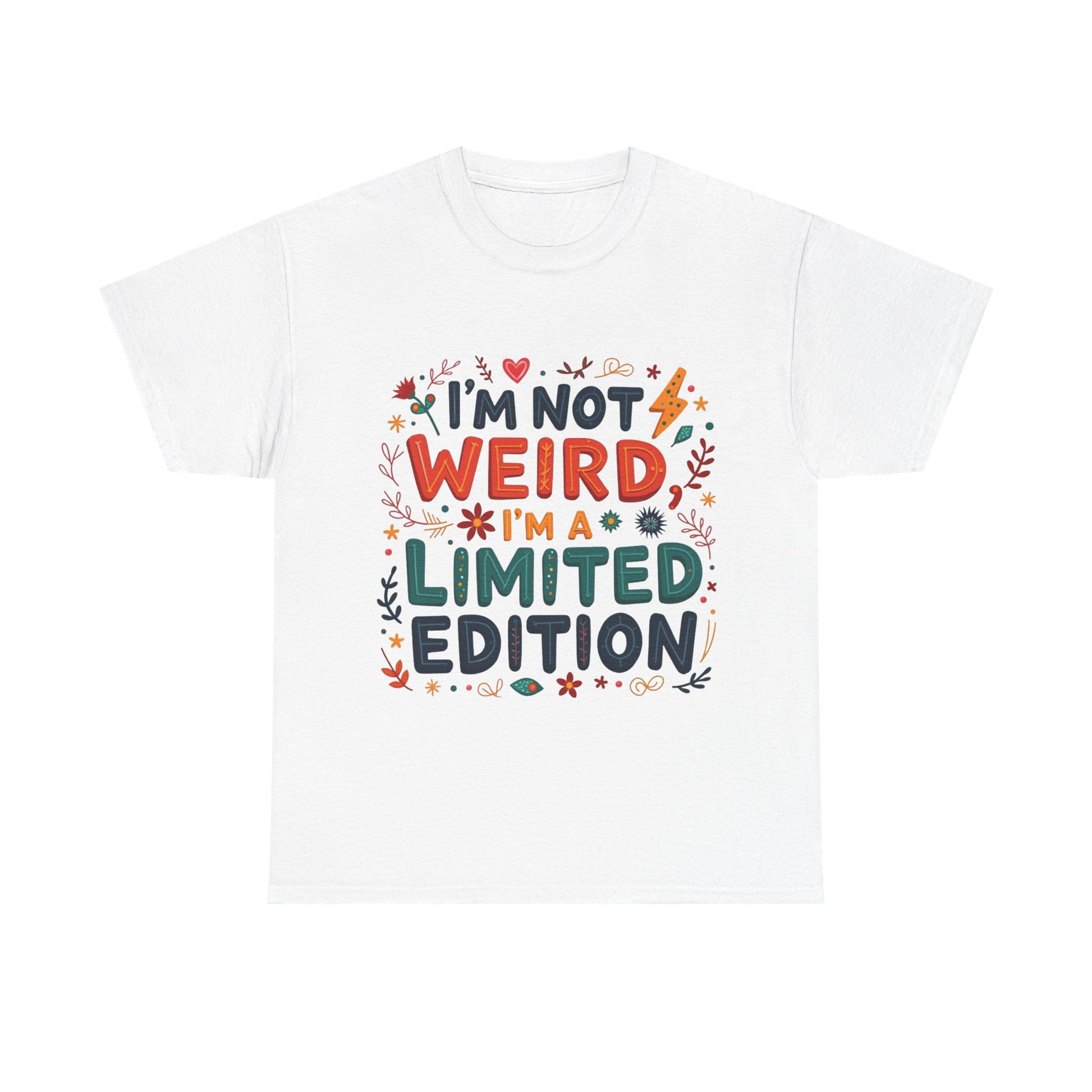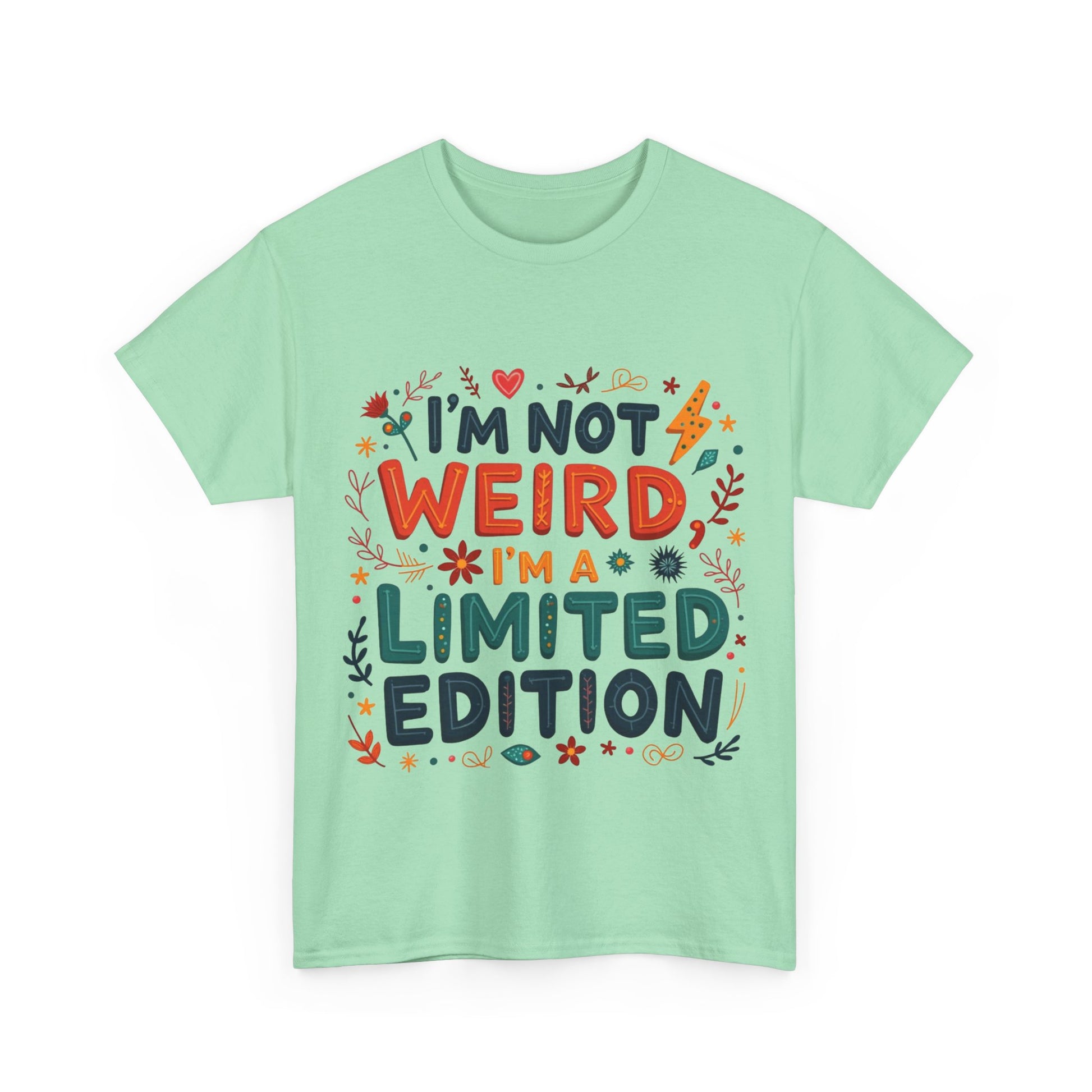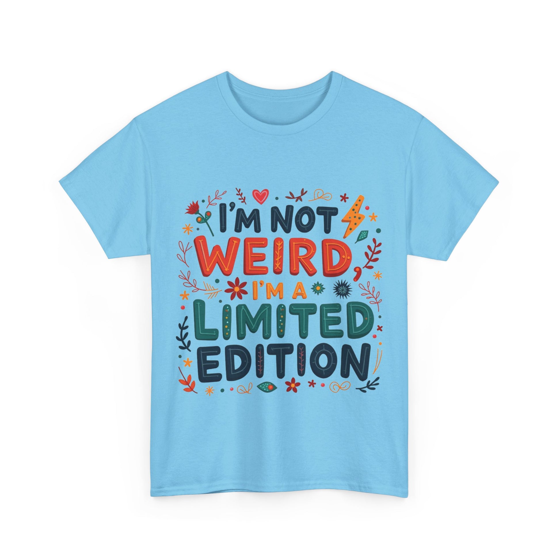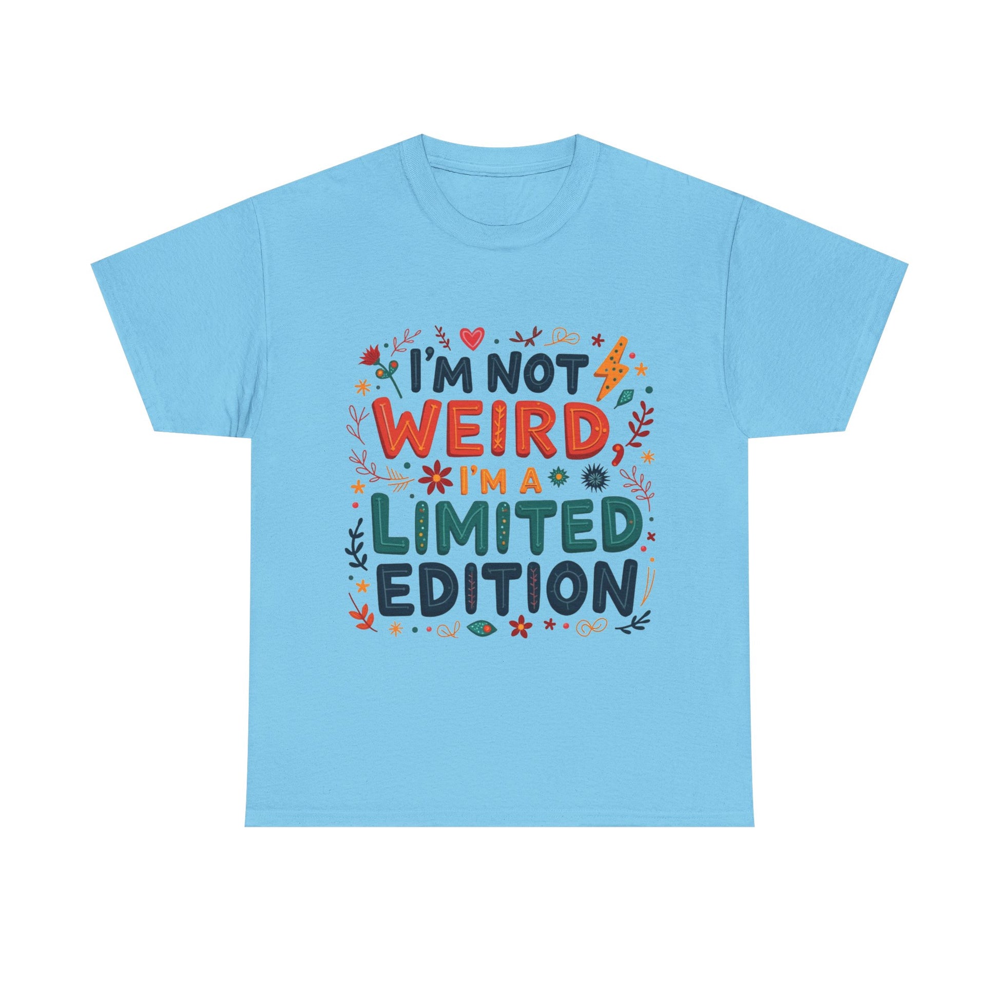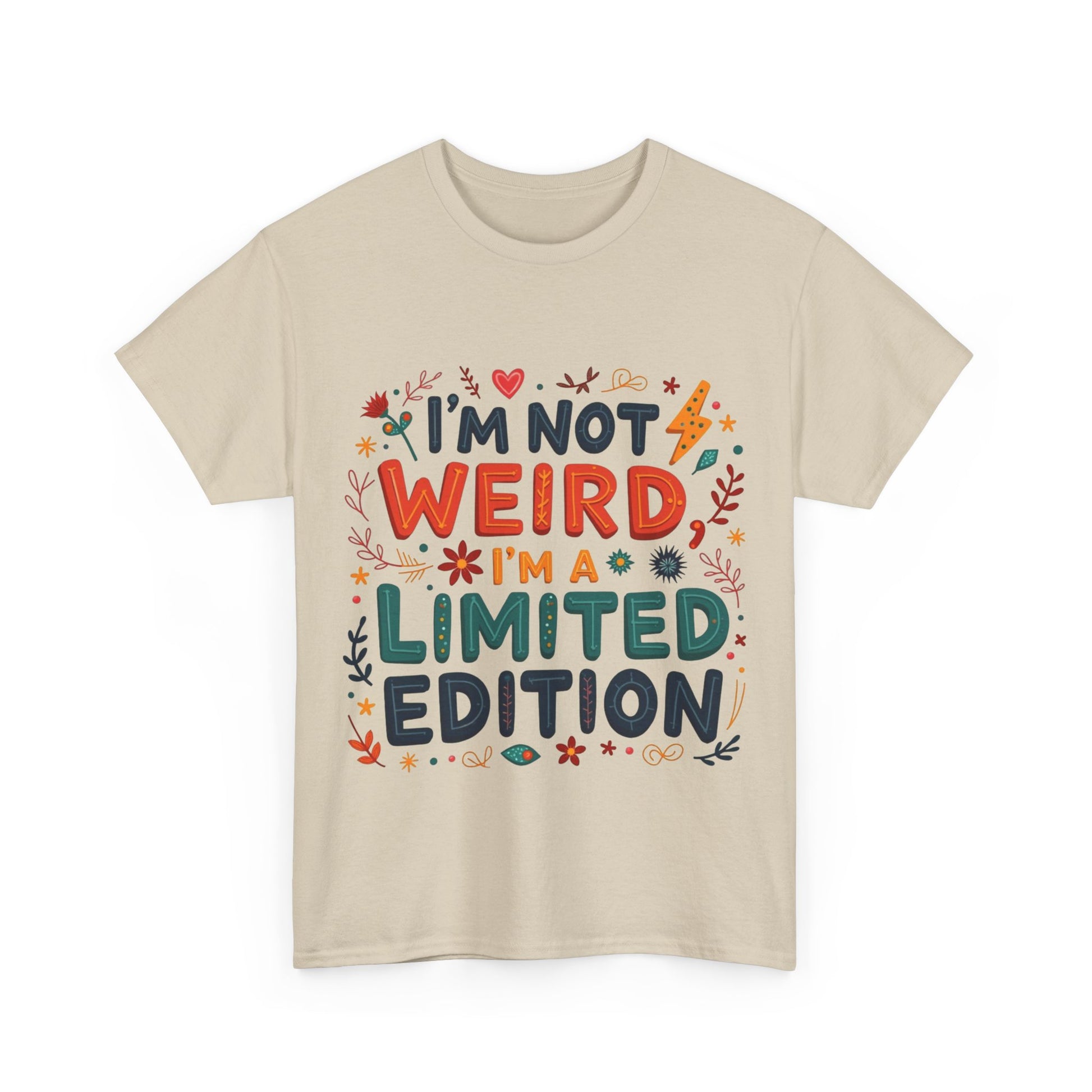 Introducing a stylish Unisex Heavy Cotton Tee that radiates fun and individuality! This eye-catching t-shirt features a playful design that proclaims, "I'm Not Weird, I'm a Limited Edition," making it perfect for anyone who embraces their uniqueness. Whether you're enjoying a laid-back day with friends or heading out to a casual gathering, this tee adds a cheerful vibe to your outfit. It’s ideal for those who love expressing their personality, making it a perfect gift for birthdays, celebrations, or just because. Made for adults, it embodies comfort with its classic fit and soft fabric, ensuring you feel great all day long. This tee stands as a perfect statement piece for any occasion, from casual hangouts to festive gatherings, and is a wonderful way to celebrate individuality during events like Halloween or quirky themed parties!