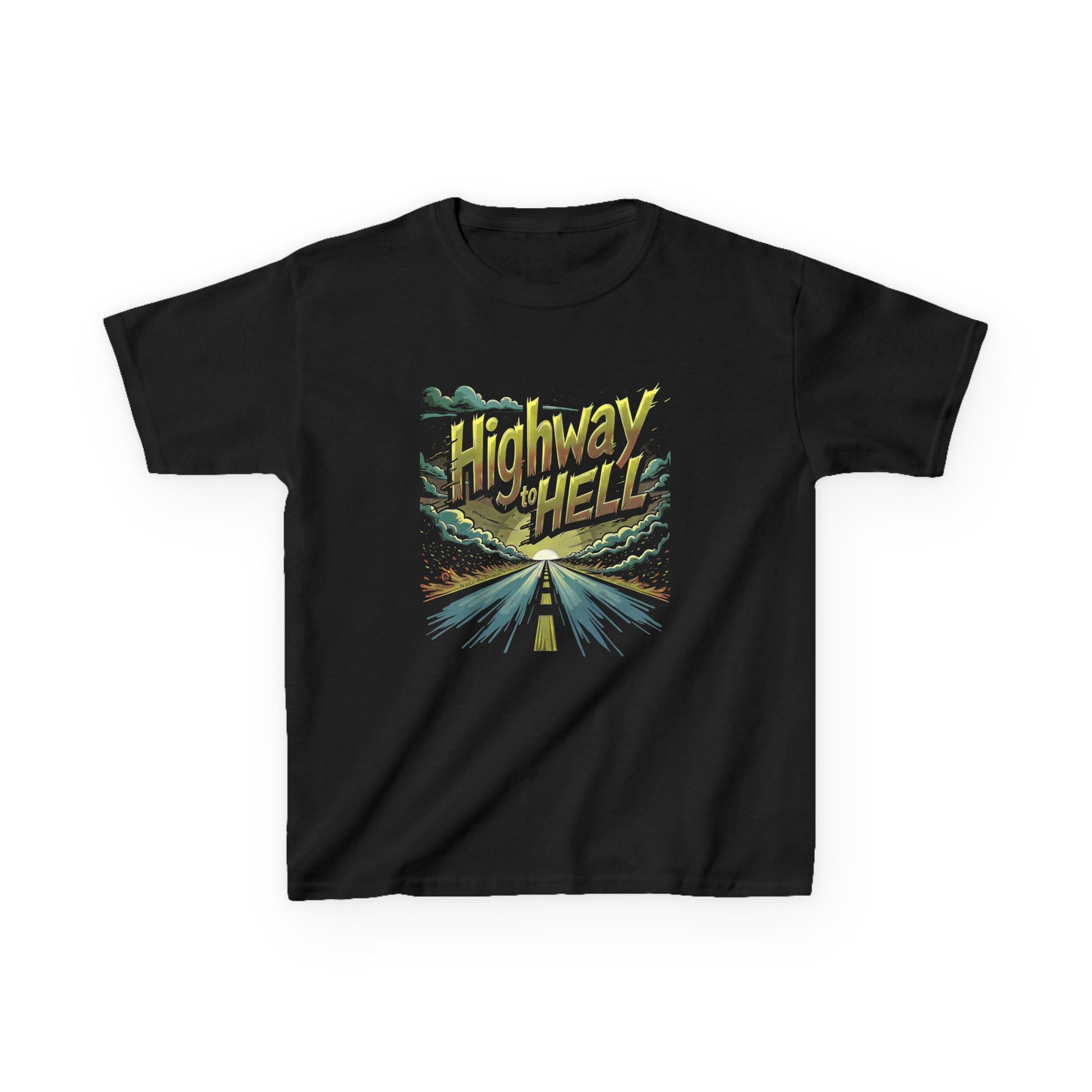 This Kids Highway to Hell T-Shirt gives off a cool and edgy vibe, perfect for young rock music fans. It is ideal for kids who want to make a statement with their fashion. This tee is great for casual wear and can be worn during music festivals or rock-themed parties.